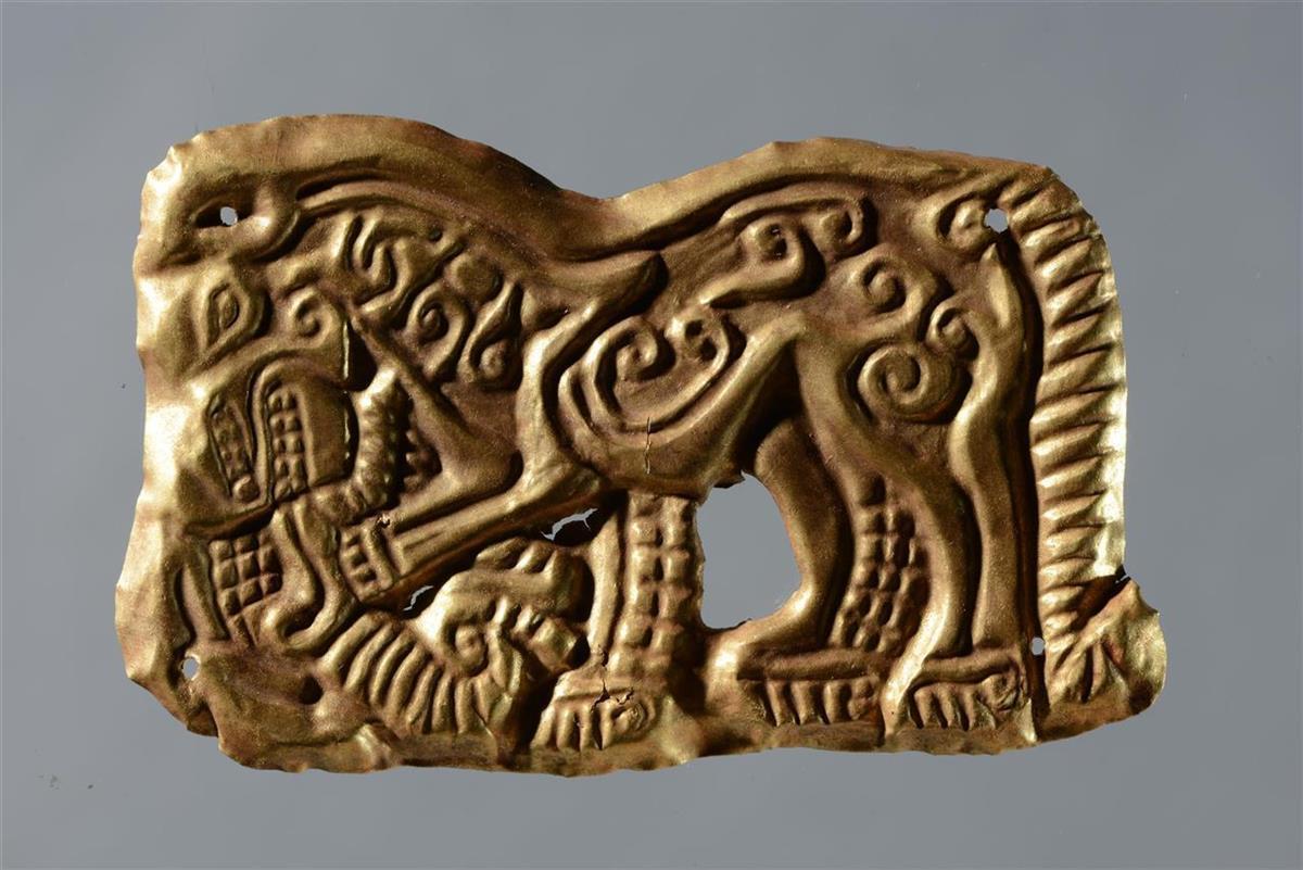 武汉博物馆信息部工作人员陈声宇告诉极目新闻记者,有一件金器的造型是“老虎吃羊”,说明他们遵从弱肉强食的自然规律,崇尚勇武精神。“因为他们的生活方式是游牧加上狩猎,所以对于游牧民族来说,贵金属不适宜打造为金块保存携带,反而是打造为生活用品,作为‘随时能带走的金子’更方便。”